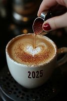 relaxed het nieuwe jaar 2025 in met een warme kop koffie of cappuccino