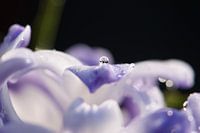 Deze foto heb ik gemaakt in de achtertuin, had wat uitgebloeide hyacinten in een vaas en heb deze met een plantenspuit bespoten en toen met de macro lens gefotografeerd.
