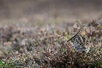 Bovenop een polletje heide rust de watersnip even uit nadat hij zojuist zijn baltsvlucht heeft vertoont boven zijn territorium. Nu is het wachten op de vrouwtjes. Doordat de watersnip landde op de heide was hij even zichtbaar, want anders is het een heel karwei om zo'n goed gecamoufleerde vogel terug te vinden in deze vegetatie.