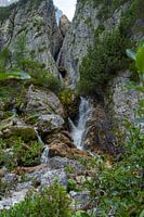 Natuurlijke landschap van een klein waterval in de Dolomieten.