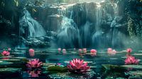 digitale spirituele schilderachtige afbeelding van lotusbloemen en water