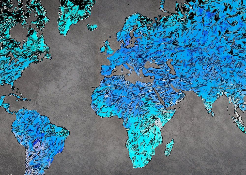 wereldkaart kunst blauw #kaart #wereldkaart