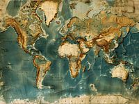 Een authentieke wereldkaart siert de muur, doordrenkt met karakter. Verweerd papier onthult oude continenten en zeeën, terwijl de warme tinten van verouderd bruin en crème de reizen van generaties vastleggen. Grenzen en namen vervagen, waardoor een tijdloze, mystieke allure ontstaat, een visuele reis door geschiedenis en geografie in een betoverende weergave van de wereld.