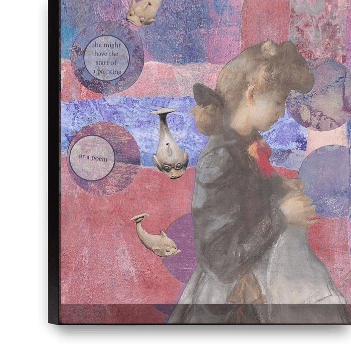 collage van gelli prints en afbeeldingen, met poëzie