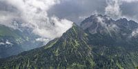 De lucht hangt zwaar over de ruige toppen van de Allgäuer Alpen, donkergrijze regenwolken drijven lui over het majestueuze berglandschap. Een wild panorama strekt zich voor me uit - van de machtige Fellhorn op 2038 meter, die waakzaam boven het Warmatsgundtal uittorent, tot de grillige silhouetten van de omringende toppen. Links…