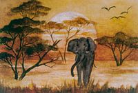 Afrika , olifant , schilderen, kunst , waterverf, origineel , werk in opdracht , Namibië , Safari , Toristik , reizen , schoonheid , glamour , zonnig , warm , humor