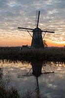 UNESCO World Heritage windmills in Kinderdijk in Holland europe, windmills at the water with reflection during twilight