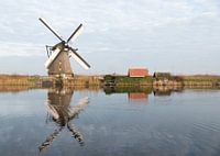 UNESCO World Heritage windmills in Kinderdijk in Holland europe, windmills at the water with reflection and twilight