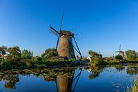 On a beautiful summer day in kinderdijk these beautiful windmills on the water.