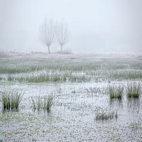 Aangevroren mist boven een drassig weiland aan de rand van het Ulvenhouts bos