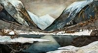 Winter rivierlandschap met hutNick Wendt Schuilplaats in de bergen - CollageNick Wendt