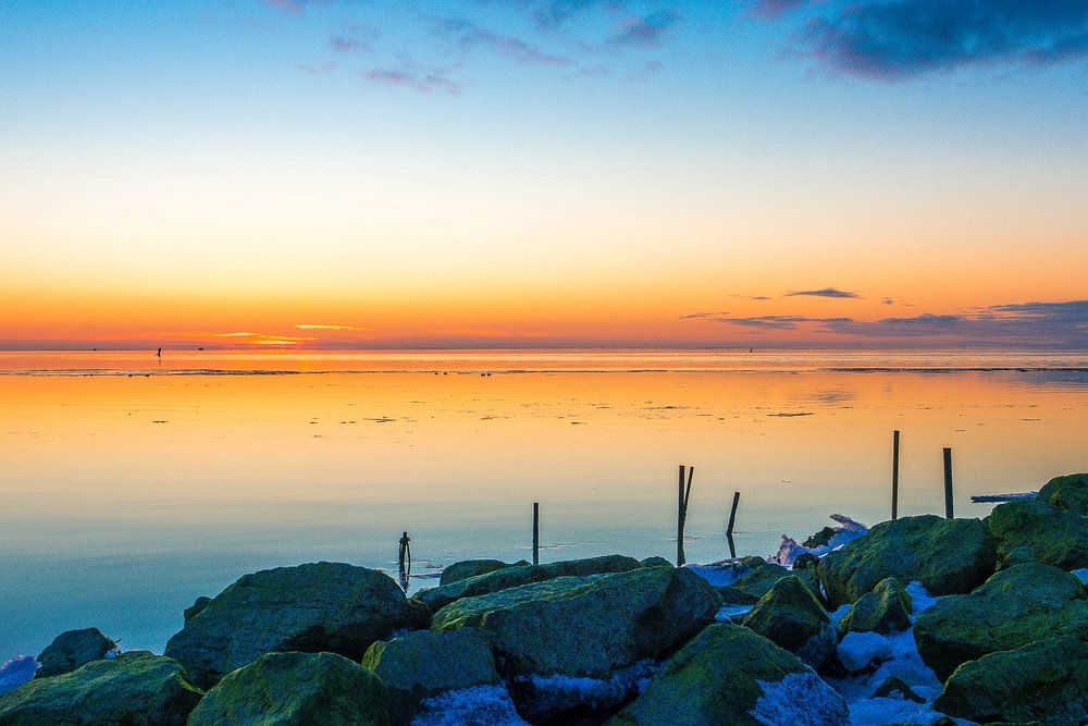 Winterzonsondergang op de Waddenzee nabij Harlingen