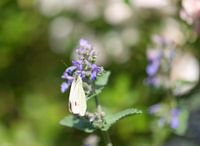 een wit vlindertje dat even komt rusten op het kattenkruid