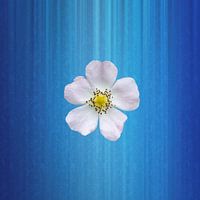 Koop dit bloemen kunstwerk witte bosroos op blauwe fantasie achtergrond van Ribbi op canvas, aluminium dibond, (ingelijste) fotoprint, behang en ArtFrame, op maat geprint in Fine-Art kwaliteit.