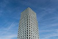 Strak wit flatgebouw tegen een strak blauwe lucht op een mooie zomerse dag