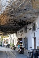 witte huizen die zich rond en in de berg nestelen. Setenil de las Bodegas, Cádiz, Andalusië, Spanje van Fotos by Jan Wehnert