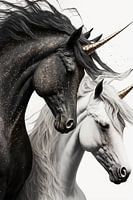 Koop dit digital art kunstwerk witte zwarte eenhoorn van haroulita als reproductie op canvas, aluminium dibond, (ingelijste) fotoprint, behang en ArtFrame, op maat geprint in Fine-Art kwaliteit.