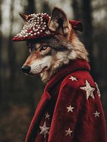 Koop de foto wolf in rode kleren van haroulita op canvas, aluminium dibond, (ingelijste) fotoprint, behang en ArtFrame, op maat geprint in Fine-Art kwaliteit.