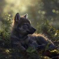 wolf pup wordt wakker