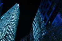 wolkenkrabbergebouwen met verlichte ramen in de nacht bij de potsdamerplatz in berlijn duitsland, kopieerruimte
