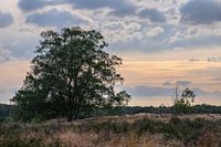 landschap op de heide in Gelderland, met een grote boom, en een prachtige wolkenlucht op het einde van de dag