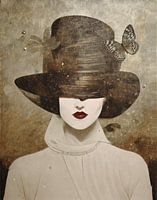 Ze staat voor een zacht canvas van aardse kleuren - de vrouw wiens gezicht baadt in zachte tinten. Haar blik is naar binnen gericht, alsof ze op zoek is naar antwoorden in de diepe lagen van haar ziel. De abstracte lijnen omlijsten haar alsof ze tegelijkertijd wordt vastgehouden en bevrijd. In deze stille wereld van toon-op-toon kleuren lijkt haar identiteit te vervagen, maar haar aanwezigheid is onontkoombaar. Ze is de echo van een gevoel dat niet helemaal tastbaar is en ook niet helemaal verloren.