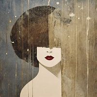 Ze staat voor een zacht canvas van aardse kleuren - de vrouw wiens gezicht baadt in zachte tinten. Haar blik is naar binnen gericht, alsof ze zoekt naar antwoorden in de diepe lagen van haar ziel. De abstracte lijnen omlijsten haar alsof ze tegelijkertijd wordt vastgehouden en bevrijd. In deze stille wereld van toon-op-toon kleuren lijkt haar identiteit te vervagen, maar toch is haar aanwezigheid onontkoombaar. Ze is de echo van een gevoel dat niet helemaal tastbaar is en ook niet helemaal verloren.