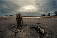 Op een strandje bij de Waal langs Nijmegen was dit wrakhout door de rivier achtergelaten. Vermolmd door het vocht heeft het oude hout de meest prachtige texturen gekregen. Mede door de gedempte kleuren krijgt deze mooie landschapsplaat een prachtig verstilde sfeer
