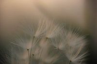 close up van de pluisjes van een paardenbloem, met een zachte bewerking en een grijze achtergrond