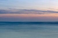 Een foto gemaakt tijdens een zachte zonsondergang met pastel tinten in de lucht. De kalme zee geeft een fijne sfeer. Gefotografeerd op Ameland, een van de mooie waddeneilanden.