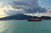zeilboot in zee aangemeerd. foto is bijgewerkt .