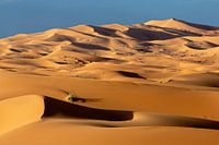 zandduinen bij dageraad in de woestijn van de Sahara in Marokko