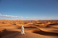 zandduinen in de woestijn van de Sahara in Marokko, Afrika. Briljant blauw van de hemel ontmoet het goud van de duinen van de Afrikaanse woestijn