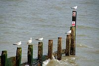 Koop de foto zeemeeuwen aan het paalzitten van wil spijker op canvas, aluminium dibond, (ingelijste) fotoprint, behang en ArtFrame, op maat geprint in Fine-Art kwaliteit.