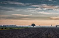 avondlandschap met zicht op het stadje Sevenum, Noord Limburg met eenzame boom