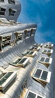 Architectuur zilveren gevel Gehry gebouwen op Neuer Zollhof Media Harbour Düsseldorf Rijn in Duitsland