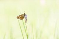 rustende zilveren maan op adderwortel in de lente hoog in de hoge venen