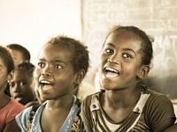 In een klein schooltje in zuid Madagaskar werden we toegezongen door de schoolklas.