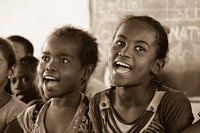 In een klein schooltje in zuid Madagaskar werden we toegezongen door de schoolklas.