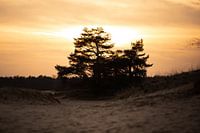 Een rustgevend beeld van een ondergaande zon op de zandverstuiving