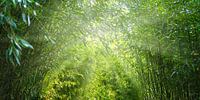 bamboebos als een jungle, weelderige groene bamboebladeren in de zon, japanse tuin als een oase van welzijn
