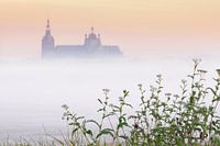 Een mistige zonsopkomst in het Bossche Broek bij Den Bosch met uitzicht op de Sint Jan