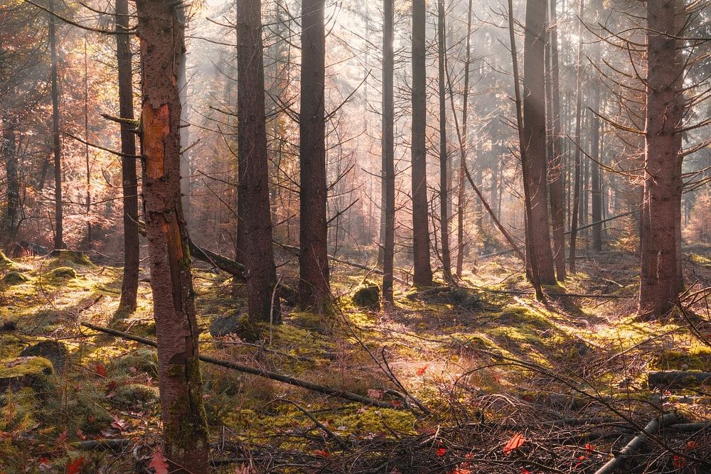 Het knisperen van gevallen bladeren onder je voeten en de frisse, koele lucht versterken het gevoel van rust en verbondenheid met de natuur. In deze tijd van het jaar is de natuur in volle transformatie; dieren bereiden zich voor op de winter en de bomen laten hun laatste bladeren vallen. Dit moment in het bos, met het spel van licht en kleur, vangt de vergankelijke schoonheid van de herfst perfect. Een landschapsbeeld van het Nederlandse bos met een zonneharp