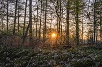 landschap in Ruurlo, in de Achterhoek in Gelderland, waar de zon opkomt tussen de bomen, gefotografeerd met een klein diafragma, waardoor de zon er als een ster uitziet