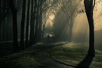 Ochtend wandeling terwijl de zon door de mist prikt.