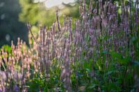 close up van een grote groep zomerbloeiende planten, in het licht van een heerlijk ochtendzonnetje