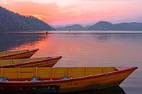 kleurrijke zonsondergang op het begnasmeer met wat boten op de voorgrond