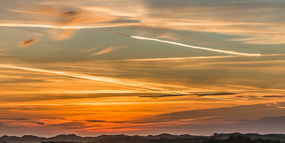 zonsondergang boven de duinen in zeeland. Boven de duinen in Ouddorp gaat de zon langzaam onder.