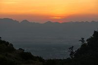 in het prachtige landschap van Thailand met zonsopgang tijdens het blauw uur boven de bergen van Myanmar