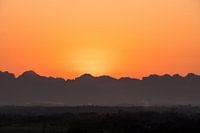 in het prachtige landschap van Thailand met zonsopgang tijdens het blauw uur boven de bergen van Myanmar